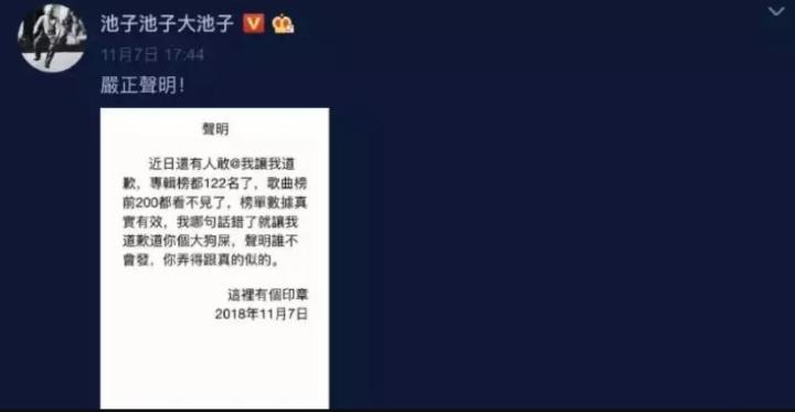 有粉丝看到声明之后立刻宣布脱粉,"本人不是池子的粉丝"。