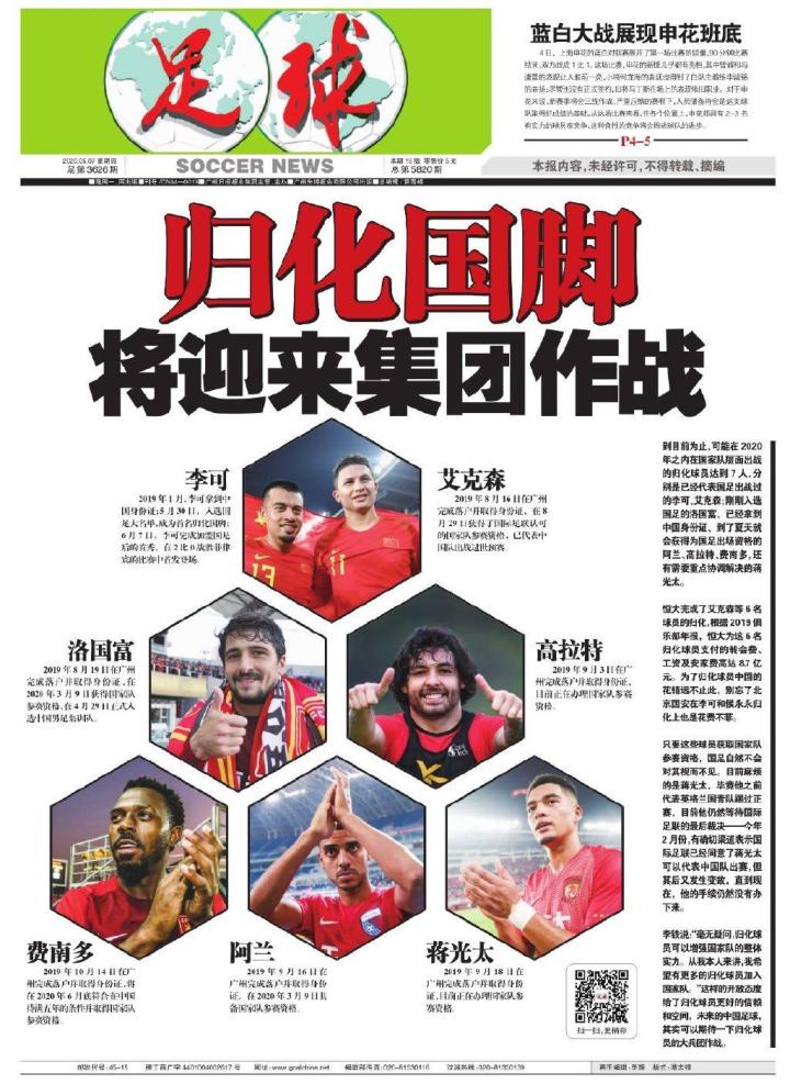 分别是已经代表国足出战过的李可、艾克森;以及刚刚入选国足的洛国富(原名阿洛伊西奥),已经拿到中国身份证、到了夏天就会获得为国足出场资格的阿兰、高拉特、费南多,还有需要重点协调解决的恒大球员蒋光太;