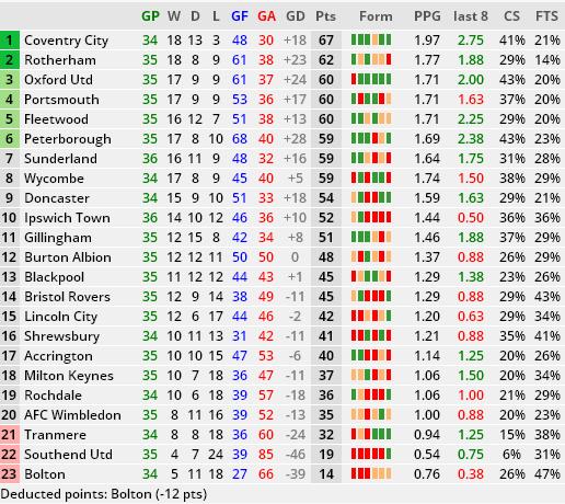 运用这种模式,英甲的前三名将会保持不变,意味着考文垂将会成为联赛冠军,并与卢瑟汉姆和牛津联一道升入下赛季的英冠联赛。