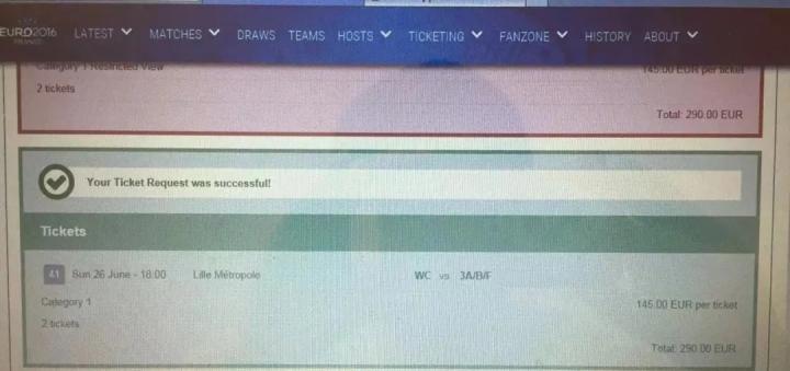 因为准备去看欧洲杯被我波弟拉入了一个欧洲杯现场看球群,跟群里的前辈小伙伴们学习了很多攻略经验。2015年12月份注册了欧足联官网账户,提交了这两场比赛的球票申请,八分之一的一等票价145欧,四分之一的一等票价195欧,2020欧洲杯相对应的票价涨到了185和225欧(三个东欧城市统一为125),欧洲杯整体的门票价格还是比较合理的。2016年2月底收到了球票抽签结果的邮件通知,中了八分之一那场,四分之一没中,群友桥大户又原价转给我了一张四分之一的球票(欧洲杯的球票都不实名制,不用担心转让问题)。没想到球票搞定so easy,然后就开始做行程啦。