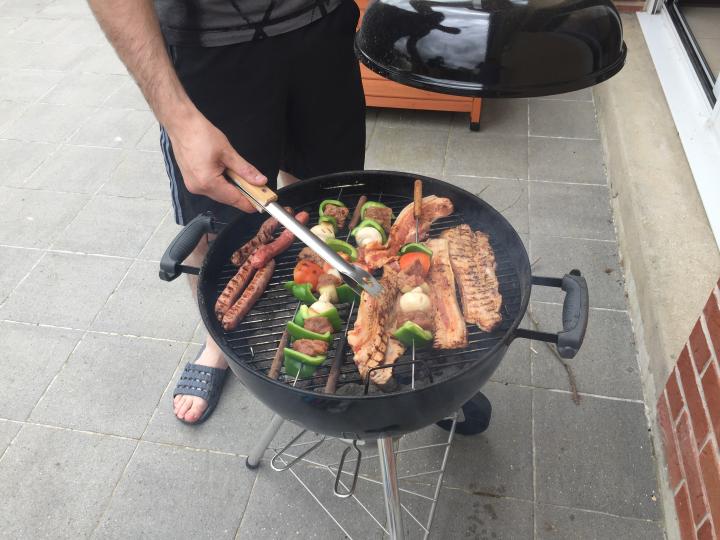 朋友家住在里尔的乡下郊区,独栋带院小HOUSE,比赛日当天中午就在小院里烧烤,和她家的大狗玩的很开心。中午吃完饭朋友开车送我们去镇上的火车站坐火车进城,当天往返的车票都已经提前帮我们买好了,回来的乘车路线也都给我们交代好,还提醒我们一定要在车站的打票机上打票,否则会被视为逃票,我们后面坐欧铁的时候也是一样的。