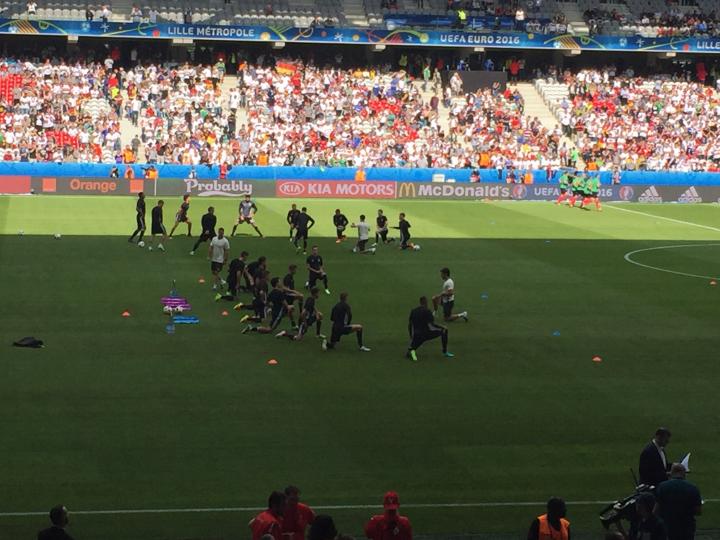 德国战车展现出了完美的状态和碾压对手的实力;中场指挥官克罗斯几乎无处不在,调度指挥着球队的进攻,边路套上和中路包抄环环相扣压迫的斯洛伐克人几乎喘不过气来;而斯洛伐克核心后来加盟大连的哈姆西克只要一拿球就会面临德国人的全场围剿,迫使他回撤很深来要球造成本队的前后场严重脱节,全场几乎没有任何有威胁的进攻;德拉克斯勒踢出了自己国家队生涯的最完美表现,一球一助,下半场开场不久利用角球机会他一记漂亮的凌空勾射为德国人早早的锁定胜局;随后勒夫开始鸣金收兵,波多尔斯基替换小德上场完成了自己代表国家队的最后一场正式比赛,博阿滕和赫迪拉也先后被换下,小猪替补登场;德国队以一场3:0的完胜淘汰斯洛伐克挺进四强,这场比赛至今仍被认为是德国队近几年大赛里踢得最好的一场;而初临欧洲杯现场的我们也是尽兴而归。