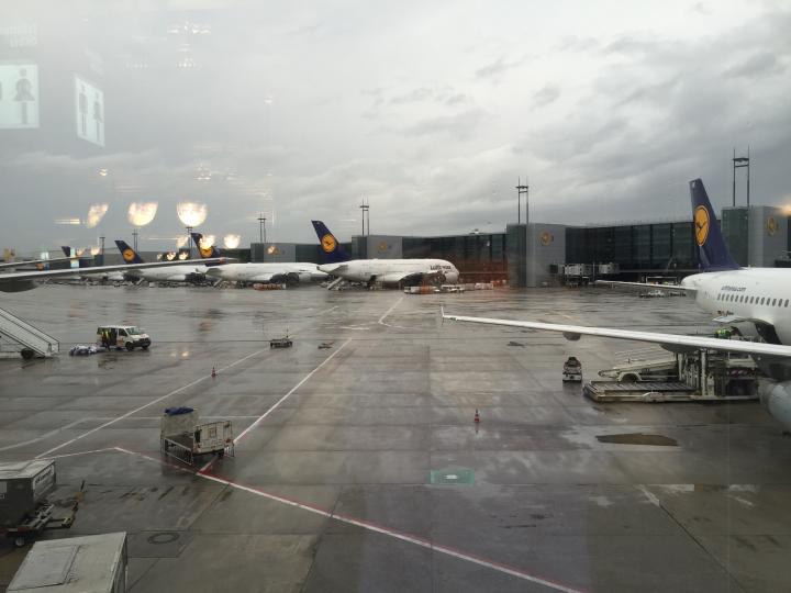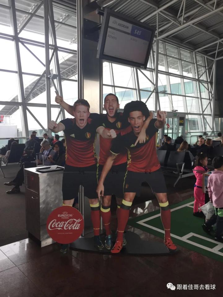 经过了几个月的漫长等待,终于等到了欧洲杯开赛日和出发日,出发前已经知道了第一场八分之一决赛会看到德国对斯洛伐克,四分之一是比利时匈牙利胜者对威尔士北爱尔兰胜者。从北京飞法兰克福的CA965飞行时间约九个小时,入关很顺利,德国边检的工作人员还是很严肃认真的,我们还帮一个从国内来德国帮子女看孩子不会说外语的阿姨和边检交流,和她一起入了关又送她到转机的登机口。法兰克福机场满眼都是汉莎的飞机,不过还没看到欧洲杯的氛围。中间转机有三个小时的时间在机场吃了个早饭买了个城市冰箱贴,然后登机不到一个小时就从法兰飞到了布鲁塞尔。布鲁塞尔机场就开始有欧洲杯的气氛了,例如可口可乐的欧洲杯广告。
