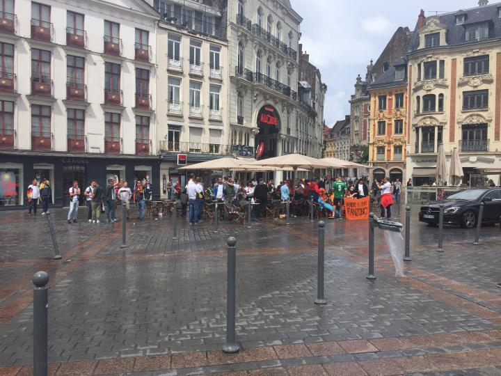 里尔是法国北部最大的城市,也是法国第五大城市(不过城市人口也就20多万),欧尚、迪卡侬、乐华梅兰等大公司都出自于里尔。不过这里并不算一个旅游城市,我们也就走马观花的看了看市中心火车站周边的广场和教堂然后就出发去球场了。在里尔的市中心设有几处欧洲杯球迷咨询中心,可以领到关于比赛和城市信息的小册子,还有志愿者和工作人员告诉你如何去球场。从里尔市中心火车站乘坐里尔仅有的两条地铁线都可以到球场,一号线出来走路可达,二号线则是需要坐免费摆渡车,都很方便。里尔地铁建于1983年,是世界上第一条无人驾驶的地铁线路呢。