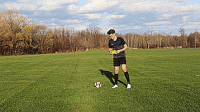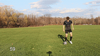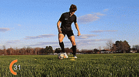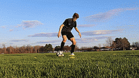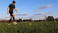 最后一个练习我们将用自己的脚外侧推球穿过身体,假想当对手伸脚时,我们推球摆脱防守,然后在快速用脚内侧向前推。