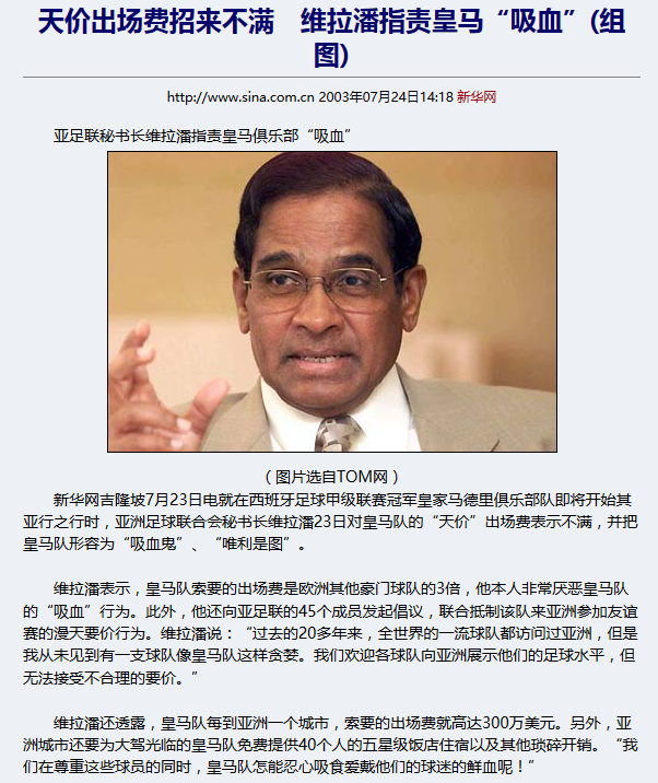 皇马03年访华始末:谁是吸血鬼?