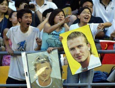 当贝克汉姆加盟皇马,出现在马德里机场时,疯狂的西班牙粉丝为了一睹真容让安保人员不得不“杀出一条血路”。而在昆明,更多地只是在一旁的尖叫,初次相见的中国粉丝在激动之余还是维持了一些矜持。