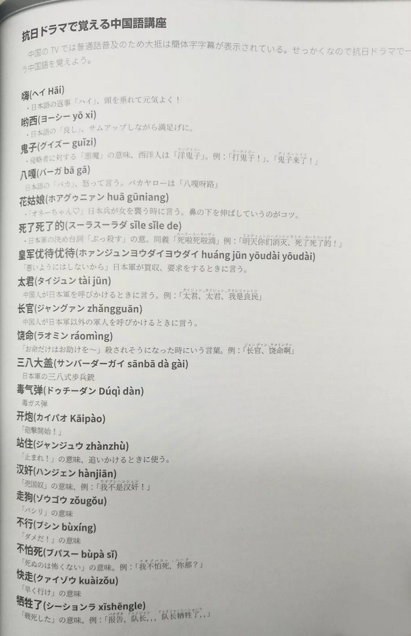 在这本书里,他还特意制作了一章“抗日剧中的中文讲座”: