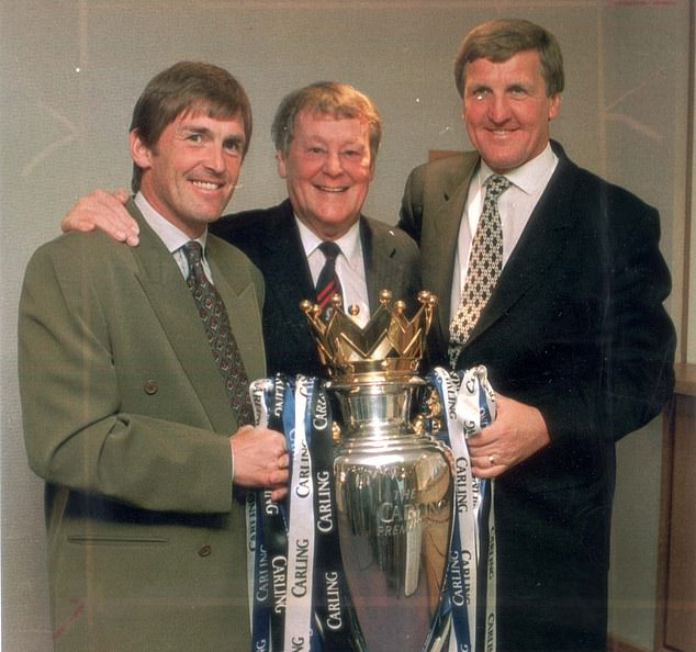 1995年赢得英超冠军,中间的是杰克·沃克,左达格利什,右是助手雷·哈佛。