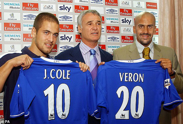 他的早期签约球员包括下图乔·科尔(左)和贝隆(右),但拉涅利(中)很快被何塞·穆里尼奥所取代,而后者取得了巨大的成功。