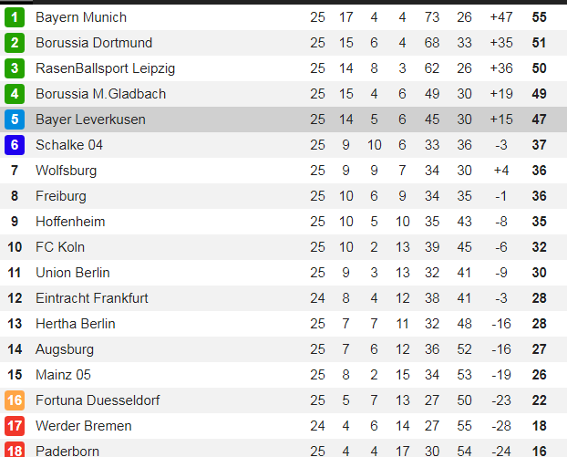本赛季前半程德甲的秩序较为混乱,25轮后分级逐渐清晰。