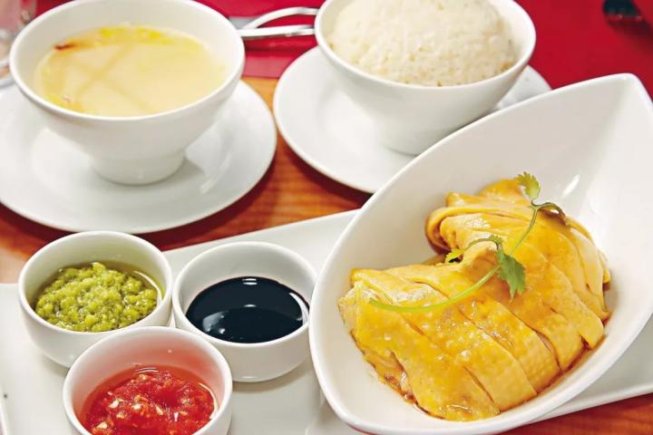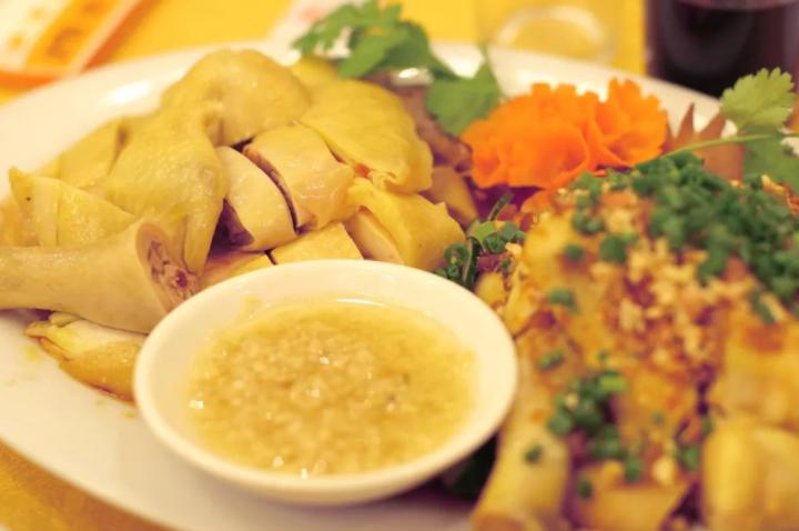 这道由海南人创造的美味,却最先出现在新加坡。当年“下南洋”的海南人,根据家乡的做法,将白切文昌鸡和祭祖用的鸡饭团稍加改制,当街叫卖,成为了海南鸡饭的雏形。而后改用南洋菜中的黑豉油和辣椒酱做蘸料,含有椰糖的黑豉油浓厚醇正,以糖、醋、蒜和鱼露调制的辣椒酱带着酸甜滋味,因而风靡东南亚一带。到今天,海南鸡饭早已成为了新加坡的“国菜”。