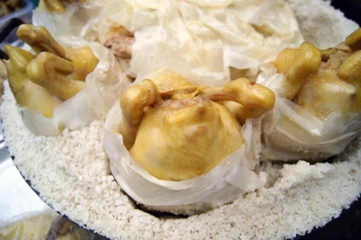 金庸先生在《射雕英雄传》里写道:“黄蓉用峨嵋钢刺剖了公鸡肚子,将内脏洗剥干净,却不拔毛,用水和了一团泥裹住鸡外,生火烤了起来。烤得一会,泥中透出甜香,待得湿泥干透,剥去干泥,鸡毛随泥而落,鸡肉白嫩,浓香扑鼻。”这一手叫花鸡,为郭大侠换来了洪七公的降龙十八掌。