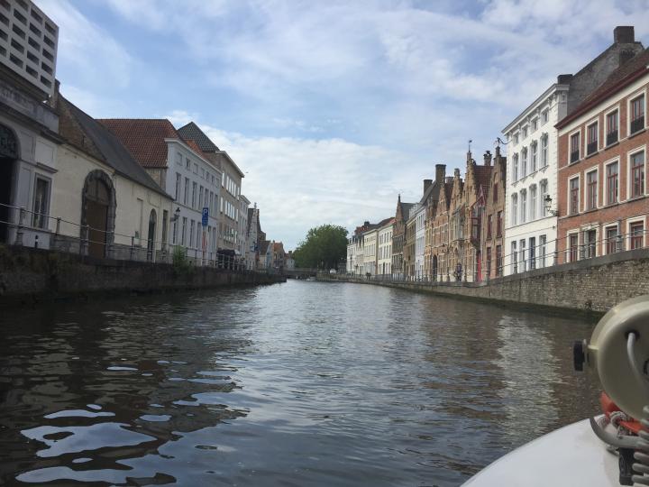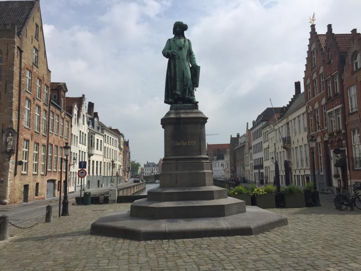 布鲁日(Bruges),位于比利时西北部,西佛兰德省省会,比利时著名的文化名城和旅游胜地。“布鲁日”在佛兰德语中有“桥”的意思,由流经市内的莱伊河上的一座古罗马桥梁而得名,14世纪为欧洲最大的商港之一。现在的布鲁日分为新城和老城两部分,主要的旅游景点都集中在老城。中午时分到达布鲁日火车站,出来打个车几分钟就到了老城区。我们预定的酒店是一个当地人用自己家的房子开的民宿,这样的民宿是在布鲁日住宿的首选。房主是个中年男子,每天早上给我们煎蛋做早饭,还给我们推荐了几家城里的特色餐厅。我们还一起聊了聊足球,听说我们从中国来自然就聊起了王上源,又听我们说是专门来看欧洲杯的,几天后还要去里尔看比利时同威尔士的四分之一决赛,他还表示很羡慕呢。