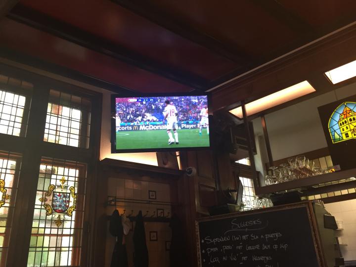 Markt广场周边密布着各种餐厅和酒吧,白天可以在这里坐着悠闲的喝咖啡享受欧洲小城的宁静,到了夜晚就可以在酒吧要上一杯啤酒看欧洲杯。那天晚上进行的是意大利VS西班牙和英格兰VS冰岛这两场八分之一决赛,我们都是在酒吧看的,人非常多加上酒吧的小哥哥自己也忙着看比赛要杯啤酒都要等好久;我们旁边还坐了一个当地的老大爷,看起来岁数很大了拄着拐杖走路都有点颤颤悠悠的,还来酒吧边喝啤酒边看球,一边看还跟我们说你们看布冯这个老头子哈哈哈,结果一会老大爷没动静了原来是看球看睡着了。