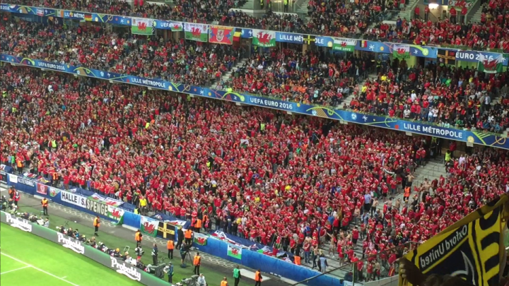 五天后再次来到里尔的皮埃尔•莫鲁瓦球场,依然满座,整个球场都是一片红,氛围超棒。比利时的球迷数量明显更多,威尔士球迷虽然数量少气势却更足。这场四分之一双红会的赛场上云集了众多大牌球星,其中几位几年后陆续来到了中超,包括威尔士主教练科尔曼和四名比利时国脚。
