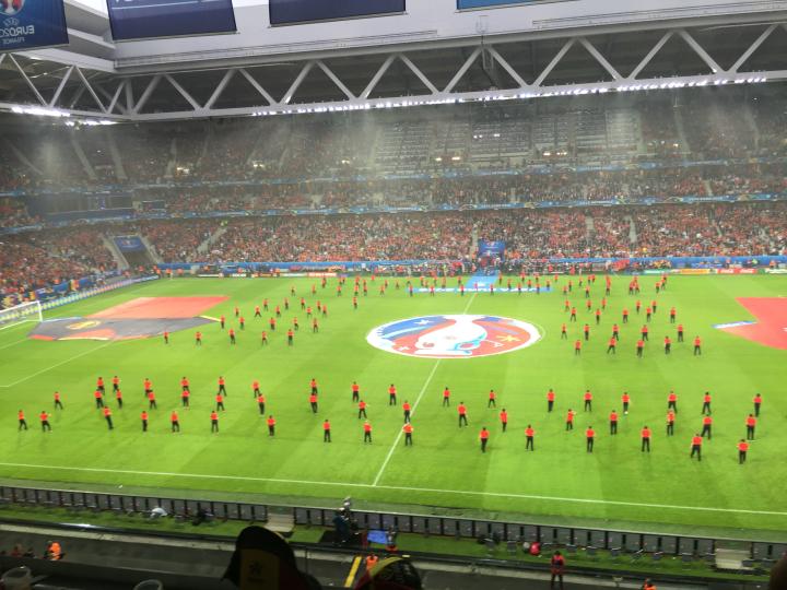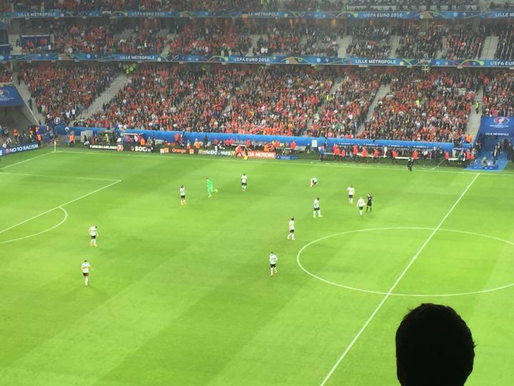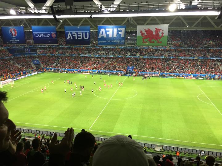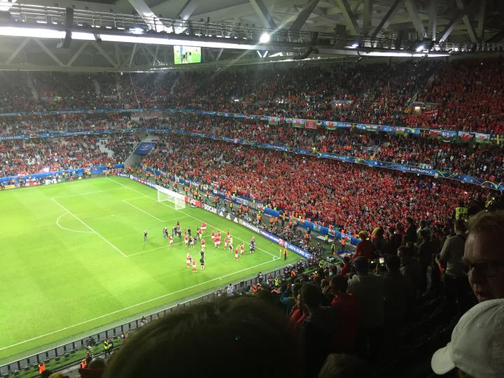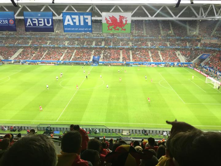 赛后比利时球迷黯然离场,威尔士队则和自己的球迷忘情庆祝,尽情歌唱。我们在散场的时候遇到一个上了年纪的威尔士球迷,我们跟他表示祝贺,他动情和我们说威尔士只是一个“small country, small team”,能有今天这个结果已经很开心了。在现场看完这场比赛,我觉得自己对足球甚至对生活的认知又上了一层。足球就像生活一样,虽然处处充满着艰辛和坎坷,但只要勤奋努力团结,小人物也可以实现自己的小目标,享受其中的快乐和幸福。在现场的那种氛围和感觉可以让你短时忘却生活里所有的烦恼和不快,全身心的沉浸在足球的欢乐气氛里。这趟欧洲杯真是不虚此行,也坚定了我之后继续看大赛的决心,两年后出发俄罗斯开启了自己的第一次世界杯之旅。