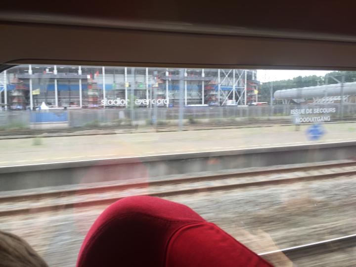 从阿姆坐火车到里尔大约需要两个半小时,火车路过鹿特丹的时候还看到了费耶诺德的主场。中间在布鲁塞尔换车,从布鲁塞尔就上来了大批的比利时球迷。从布鲁塞尔到里尔的车程只有半小时,加上球队的头号球星阿扎尔在去切尔西之前曾长期在里尔效力,这场比赛对于比利时队来说绝对是主场作战。很多去里尔的比利时球迷其实也没有球票,就是为了去里尔的球迷广场看比赛离自己的国家队近一点,足球对于他们来说就是生活的一部分,也是一场Party。