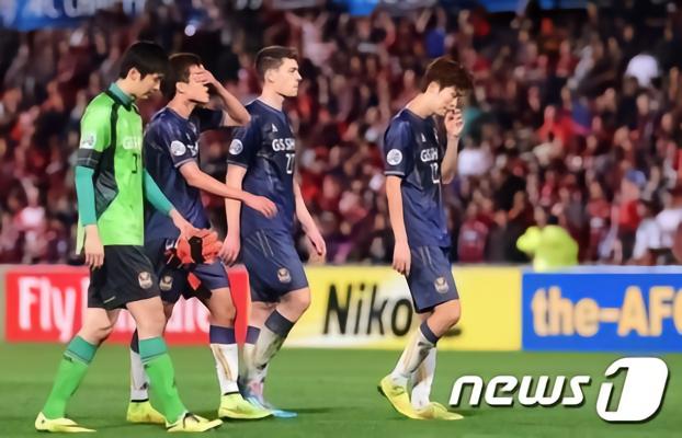 让韩国足球人心碎的还有那年的亚冠。自亚冠改制32强后,韩国K联赛无疑是第一霸主,2009~2013连续五年有球队闯入决赛,并且拿下了三个冠军。2014年,韩国“双冠王”浦项铁人携亚军蔚山现代以及全北现代汽车和FC首尔四强出战,结果除了蔚山现代遭遇小组出局外,其余三队全部杀入淘汰赛。而以“全韩班”为主的浦项铁人更是掀起了一阵韩国旋风。那一年,浦项铁人分别与全北现代汽车和FC首尔在淘汰赛相遇,结果他们闯过了第一关,没有闯过第二关。四强,FC首尔成为了韩国的独苗。很多人认为他们面对第一次参赛的西悉尼流浪者,经验上首尔可以过关。但谁也没有想到,上届亚冠亚军FC首尔在首轮主场0-0战平对手的情况下,客场第3分钟就被对手取得进球,而反扑的首尔没有扳平比分,反而在第64分钟被对手再入一球,意外0-2在悉尼溃败。大家看到的这张照片,就是2014年10月1日赛后首尔球员的绝望和失望展现。悉尼的这次溃败,让韩国K联赛球队梦想六次连续进入亚冠决赛的美梦化为泡影。而也就是这一年,K联赛在亚冠的统治地位开始出现了动摇。