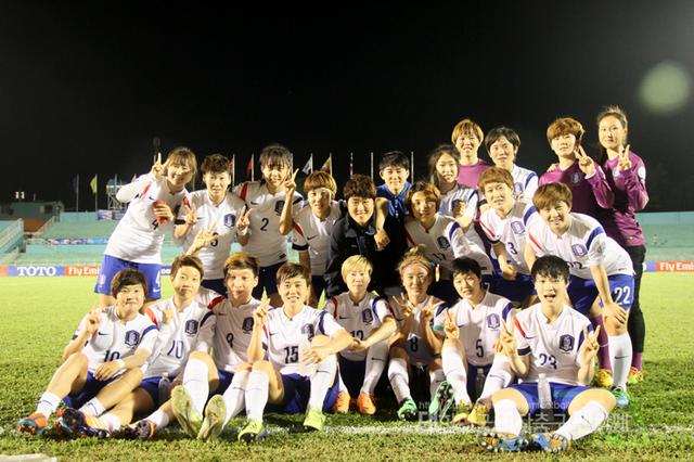 韩国女足那一年不是没有成绩,最大的成绩就是他们杀入了世界杯。5月14~25日,2014女足亚洲杯在越南举行,由于那届比赛,恰好是世界杯第一年扩军受益的比赛,因此亚洲共有五个名额。结果韩国女足在尹德汝教练的率领下,以B组第一身份杀入半决赛,完成了历史上第二次进入世界杯的壮举。这也是继2003年之后,他们时隔12年重返女足最高水平的舞台。对于韩国女足来说,这是这一年的最大突破。那届比赛,韩国在首战12-0击败缅甸,次战4-0击败泰国后,就提前拿到了世界杯的参赛权,这张照片就拍摄于对阵泰国赛后。