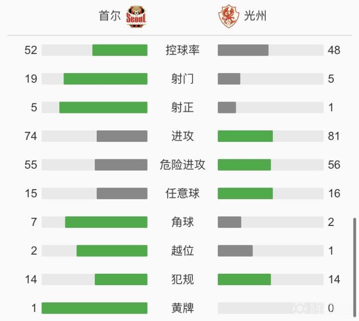 第65分钟,首尔在主场取得进球!这次是韩赞熙在大禁区弧顶的位置果断起脚轰出世界波,首尔1-0光州。第73分钟,光州在前场寻找机会,洪俊豪尝试一脚射门,颇具威胁。第83分钟,光州继续寻找机会,金孝基也是尝试一脚射门,但是打偏了。