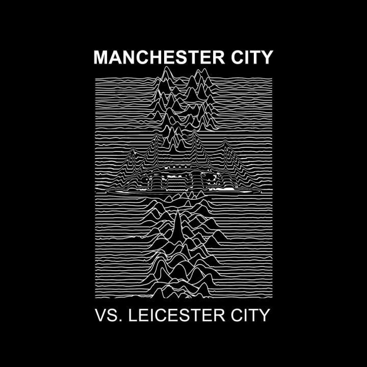几乎所有人看到这个海报/专辑封面的时候都会觉得“我在哪儿见过”,但不一定知道它的真正出处。这是来自大曼彻斯特郡的乐队Joy Division的首张专辑,而2019年恰好是专辑面世40周年整,莱斯特城用这种方式表示致敬,中国乐迷通常将他们简称为JD。