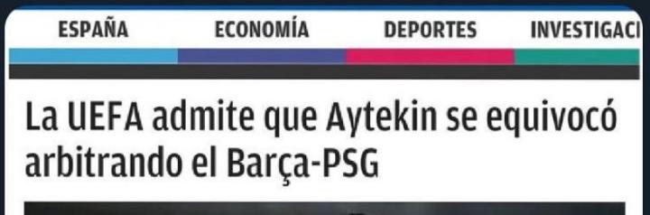 此前有媒体报道,欧足联承认巴萨6-1巴黎的当值主裁未履行职责。不过按照法国媒体culturepsg的说法,这是假消息。