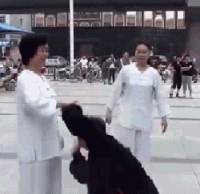 视频里,闫跟着弟子们切磋武艺。一掌劈到空气上,把徒弟打得跟摸了电门一样浑身抽搐。隔着五六位弟子,闫大师微微一笑,手指轻轻一戳,徒弟们飞身而散。《赌侠2》里面星爷的绝招,就这么被她轻易实现了。