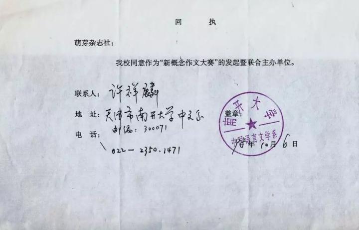 在这些文学青年感叹夏日终结的时候,《萌芽》向全国的重点大学发出协办大赛的邀请函。华东师范大学首先回应,他们的文科基地班可以招收获奖学生,然后南开、厦大、南大、山大也表示支持,最后连北大也拍板了。