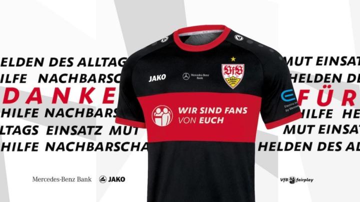 由JAKO提供的这件特别版球衣并未采用主场的白红经典设计,而是使用了黑与红的色彩搭配,球衣中部的红色条纹的胸前广告位上加入包括“Wir sind Fans von Euch”(我们是你的粉丝),“Danke für Eure Solidarität”(感谢你的支持),“Danke an die Helden des Alltags”(感谢日常生活中的英雄),“Danke für Euren Mut”(感谢你的勇气),“Danke für Eure Hilfe”(感谢你的被帮助)以及“Danke für Euren Einsatz”(感谢你的付出)等对抗疫人员的感谢话语。这是俱乐部与胸前广告赞助商梅赛德斯-奔驰银行以及球衣赞助商JAKO共同发起的一项公益活动。由于球衣广告在赛季中不能更改,因此这件特别版球衣采用了作为斯图加特市所在的德国巴登-符腾堡州象征的黑、红两色。