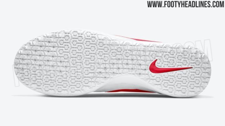 从FOOTYHEADLINES曝光的图片来看,这双即将上市的室内五人制及小场足球鞋拥有一个“铂金/大学红”的全新配色,翻毛皮与透气网布组合而成的铂金色鞋身与醒目的红色Swoosh搭配,打造出充满简约风格的全新外观。除了配色方面的更新外,这双新配色战靴在配置方面与先前发布的Nike Premier II Sala保持一致,翻毛皮与透气网布组成的鞋面穿着舒适感与触球感均十分出色,带有Lunarlon缓震泡棉的中底提供良好的缓震体验,防滑纹路大底在室内地板以及室外柏油/水泥场地上均有出色的抓地表现。