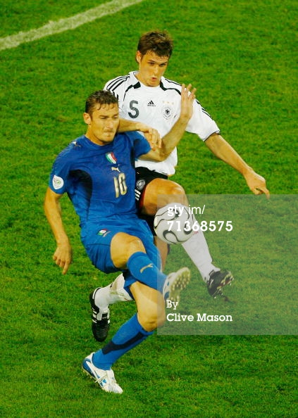 不知道看到这里,大家是否能够感受到球鞋的重要性,如果还不能,那就再给大家论证一下,2006年2月赛季,托蒂脚踝重伤,并且接受了手术,很多人以为他的世界杯就要泡汤。在复出后,为了不让伤势加重,托蒂使用的鞋子是25颗鞋钉的mg鞋底,这种鞋在国内的人草使用应该恰到好处,但托蒂就是穿着这个参加了世界杯,并且获得了冠军。