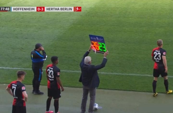 复赛后的德甲赛场,不仅庆祝动作要规范,甚至换人过程也充满规范化流程。就在赫塔大胜霍村的比赛中,或许是发现场上球员接触过密,赫塔新任主教练拉巴迪亚在比赛第78-79分钟同时更换了三名球员。只见三名要登场球员非常注意避免近距离接触,在场边等待时列队站好,至少保持1.5米距离,而被换下场的球员则先后离场,并采取击肘、对拳等方式完成换人(而非击掌)。
