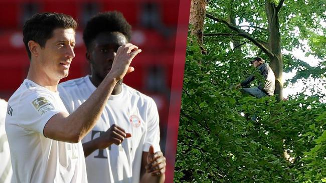 不仅比赛转播媒体很强大,来自德国的摄影记者也不逞多让。在拜仁与柏林联的这场比赛中,摄影记者居然准确捕捉到:不能进场的2名球迷居然爬到了一棵12米高的树上以观看比赛。好吧,原本无所事事的警察终于迎来了工作任务,迅速把这两位球迷从树上赶了下来,而等待这两位球迷的将是严厉处罚。