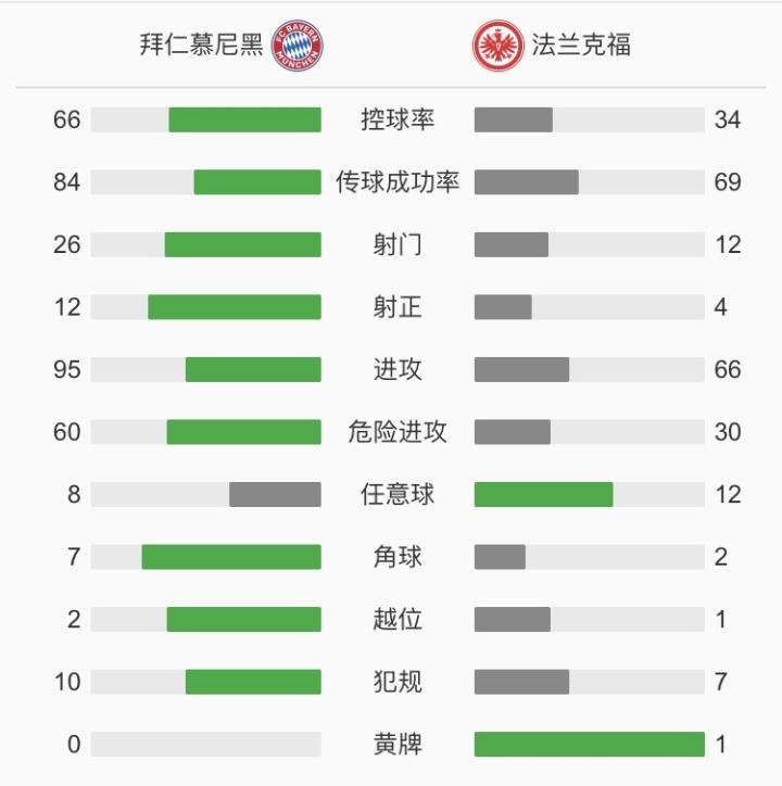 最终全场比赛结束,拜仁慕尼黑5-2法兰克福。