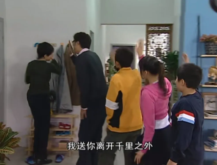 ▲到了第三部,全家送刘梅出门的时候还唱了一小段《千里之外》