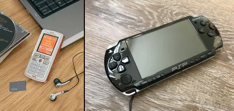 ▲2005年发布的索爱800c VS 那时的PSP。在当时,主流手机屏幕仅有2点几寸,发色数二十几万,相比之下PSP则拥有4.3英寸屏幕、480×272分辨率、1677万发色数,还能播音乐、MP4视频,看电子书,诱惑力可想而知