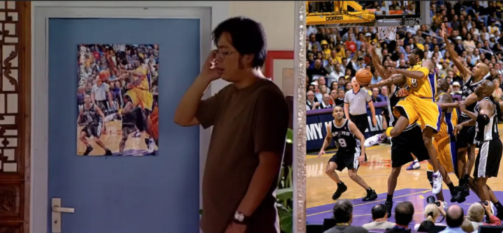 ▲刘星房门上贴的是8号科比,03年的西部季后赛次轮,马刺对阵湖人的比赛
