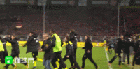 下半场开球前,极端多特球迷向拜仁禁区内投掷香蕉、打火机等杂物。
