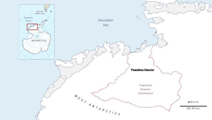 斯维茨冰川(Thwaites Glacier)位于南极西部冰原中心,是一块异常广阔而流动迅速的冰川,被科学家称为世界上“最重要的冰川”、“最危险的冰川”,甚至是,“末日冰川”。