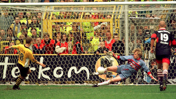 再到1998年3月,拜仁又和多特在欧冠1/4决赛狭路相逢,首回合双方互交白卷,次回合回到主场的多特凭借查普伊萨特的绝杀淘汰拜仁,终于在关键大赛报了一箭之仇。由于该赛季德甲上演“凯泽斯劳滕奇迹”,一无所获的拜仁在1998年夏天请来希斯菲尔德接棒。此时的多特纵然战绩有所下滑,但是每次面对拜仁绝不示弱。