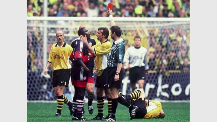 来到1997年4月,拜仁和多特在联赛中的对决彻底上升到火爆层面。由于多特在欧冠表现出色,力争德甲冠军的拜仁可不允许对手撒野。比赛中,拜仁核心马特乌斯和多特大将安德烈亚斯-穆勒发生争执,马特乌斯做出流泪手势以嘲讽对方“爱哭鬼”,而不示弱的穆勒直接伸出右手为老马抹去“眼泪”……
