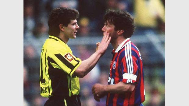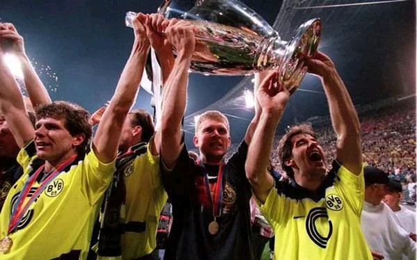 是的,正是在希斯菲尔德的带领下,多特先后于1995、96年两夺德甲冠军,并于1997年勇夺欧冠奖杯。此时的拜仁先后历经雷哈格尔、特拉帕托尼等名帅(贝皇曾短暂救火),同样在1994和1997年获得联赛冠军,还在1996年赢得欧联杯冠军。因此,拜仁与多特在联赛乃至欧战层面的你争我夺,在这个时期成为德国足坛的最强对决,而“德国德比”概念就此叫响!