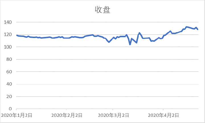 (2020年1月2日-2020年4月23日沃尔玛股市收盘价变化图。单位:美元)