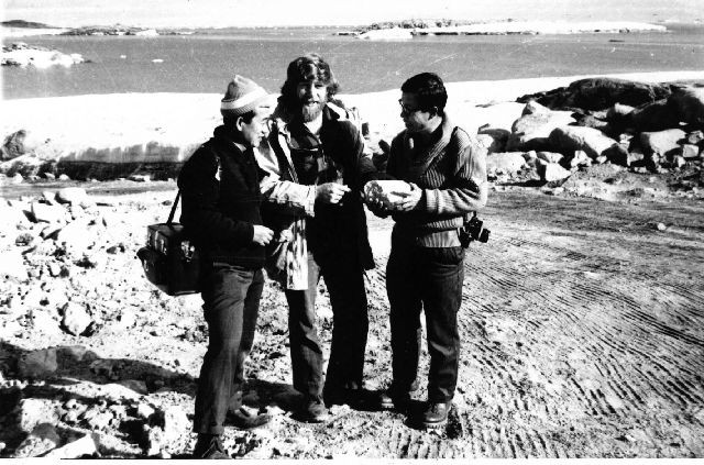 首次登上南极考察的中国科学家 | 我国科学家董兆乾(左)、张青松(右)和澳大利亚南极局副局长Knowles Kerry博士一起在澳大利亚凯西站附近考察,引自文献[1]