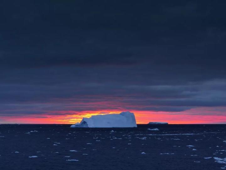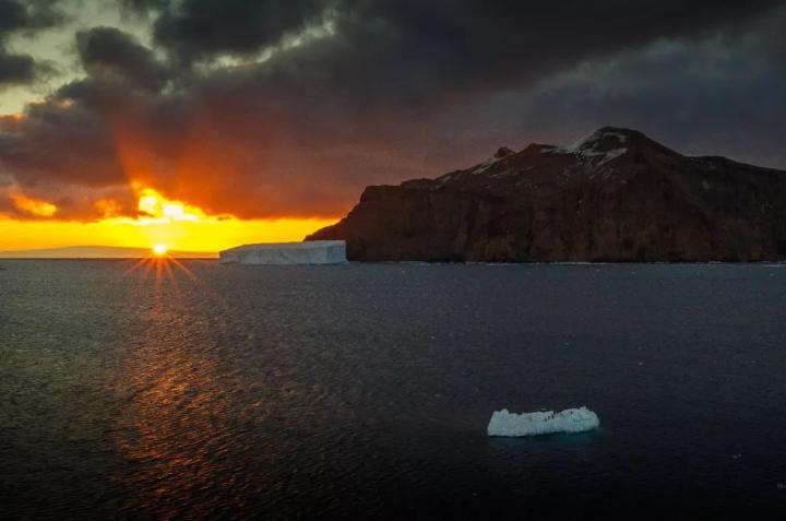 南极落日 | 夕阳,孤立的冰山,裸露的山岩,南极洲的明天会是什么样子呢?图源@VCG
