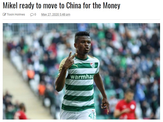 Brila新闻标题写道:阿古准备为了钱去中国踢球