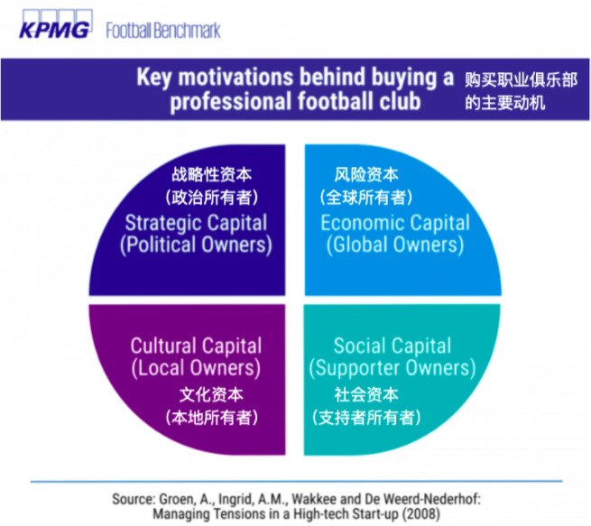 利用这一框架,KPMG Football Benchmark团队收集了每个所有者类别收购一家职业足球俱乐部的最常见动机。可以想象,其中一些动机可能适用于多种所有者类型;它们被列在最相关的一项下。