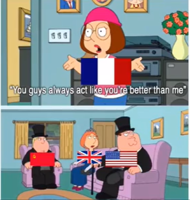 这段时间的遭遇让美国人认为法国人是一个软弱的民族,就像俾斯麦将军说:“上帝偏爱酒鬼,傻瓜和美国人”。美国人在1995年的动画辛普森一家中用了一个片段形容法国人为奶酪的投降猴子,之后这个词被美国媒体大量引用,甚至收入牛津字典里,可以说是虾仁猪心了。