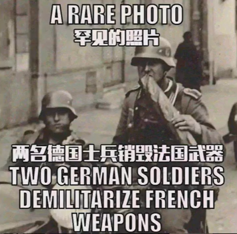 (图)鉴于二战法国投降,有些士兵甚至连枪都没拿到,所以有理由认为法棍面包才是士兵们的标配,起码硬啊